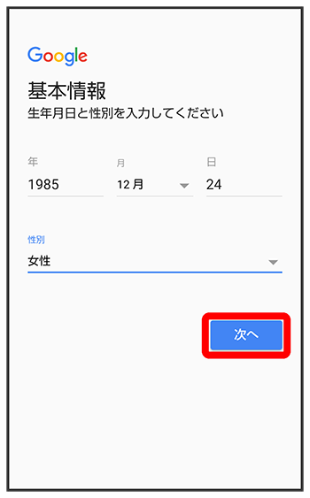 生年月日と性別を入力