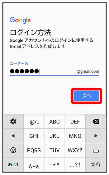ユーザー名(メールアドレス)を入力