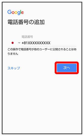 再設定用の電話番号を確認/入力