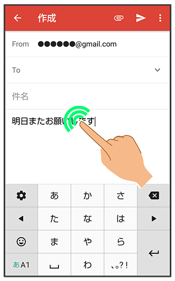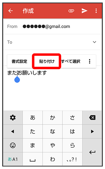 をドラッグすると、貼り付ける位置を調整できます。- アプリによっては、履歴から貼り付ける文字列を選択することもできます。