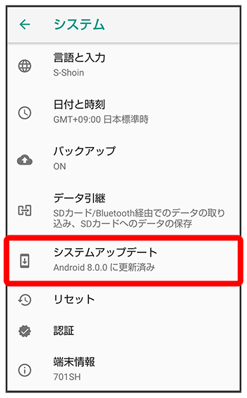システムアップデートが必要なときは、通知が表示されます。通知をタップし、画面に従って操作してください。