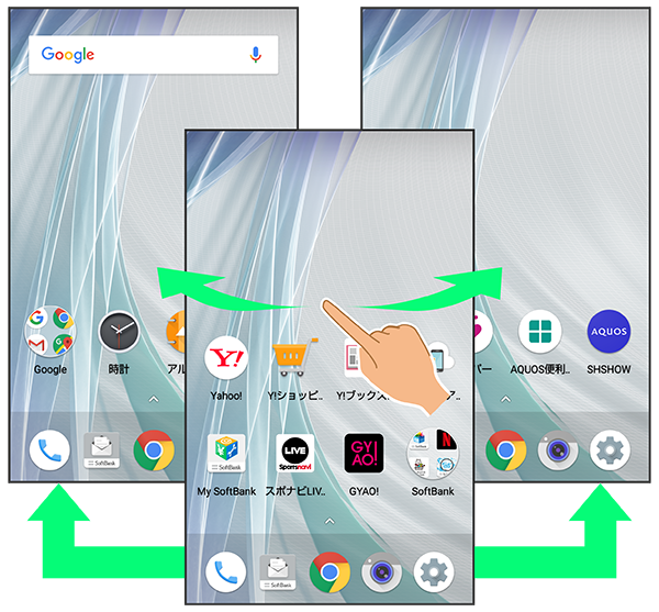 各シートを左右にフリックすると、ホーム画面シートを切り替えることができます。