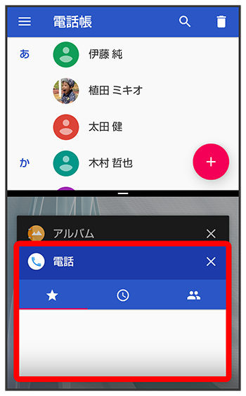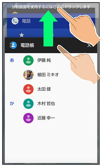 マルチウインドウ画面が表示され、ドラッグしたアプリが画面上部に表示されます。