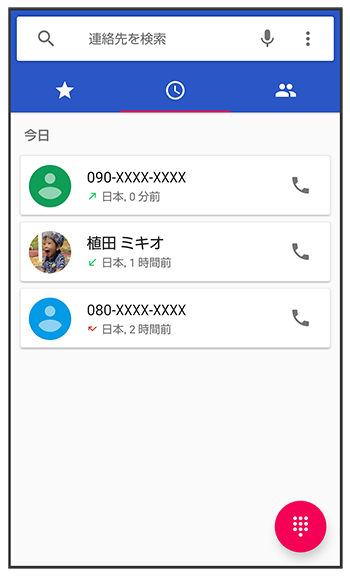 通話履歴一覧画面で、確認する相手の名前/電話番号をタップ履歴詳細画面が表示されます。