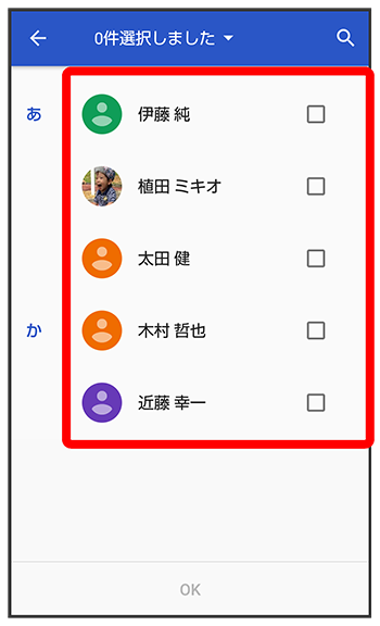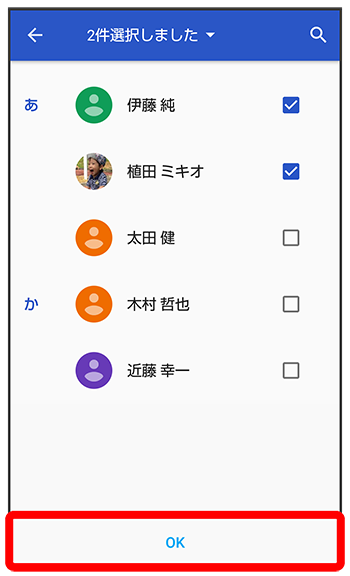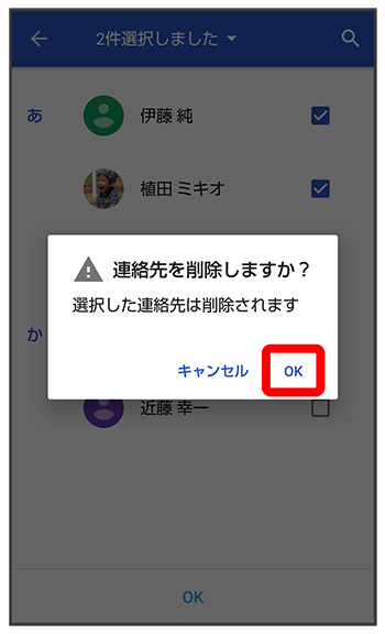 - 複数の連絡先を削除する場合は、続けてほかの対象の連絡先をタップします。
