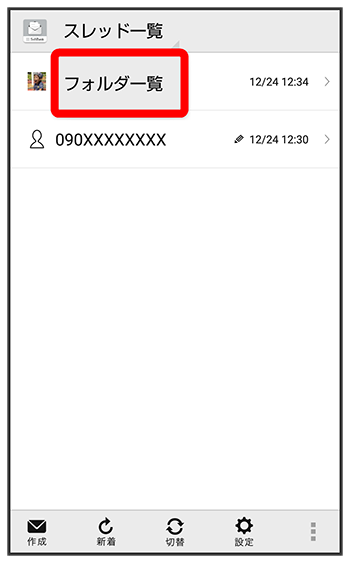 スレッド一覧モードとフォルダ一覧モードを切り替える