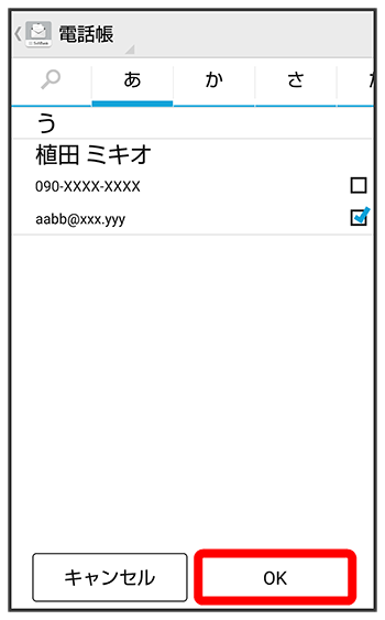 をタップすると宛先を削除できます。