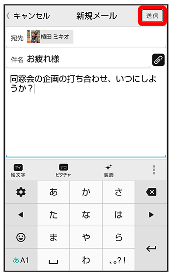 件名/本文入力欄をタップ件名/本文を入力