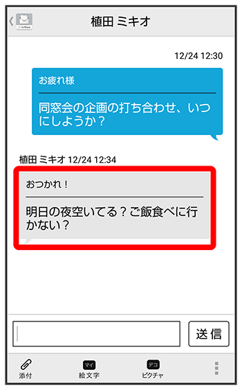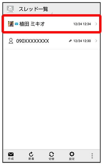 スレッド詳細画面で対象のメールをロングタッチS!メール/SMS詳細画面で迷惑メールを申告する