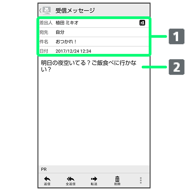 S!メール/SMS詳細画面について
