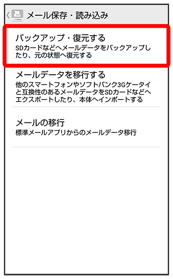 S!メール/SMSデータをバックアップする