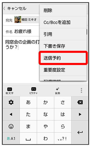 下書きとして保存され、設定した日時になると自動で送信されます。
