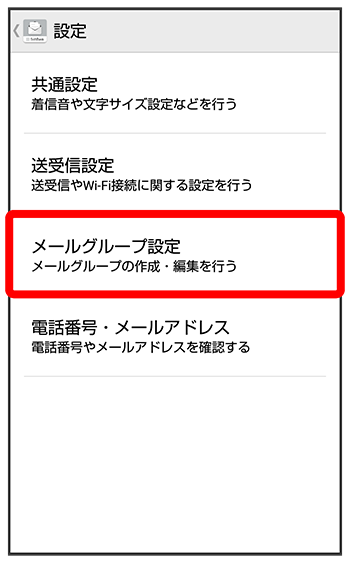 メールグループ設定画面で対象のグループをロングタッチグループ名を編集グループを削除する