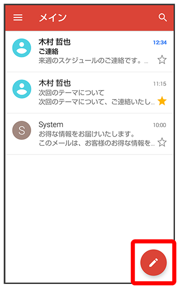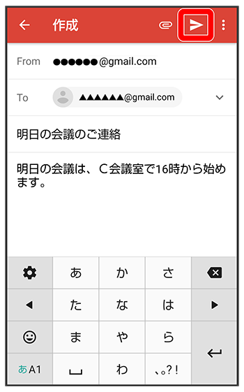 メール作成画面で- を選択すると、Googleドライブに保存したファイルを添付できます。