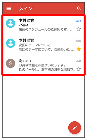 メール一覧画面が表示されます。