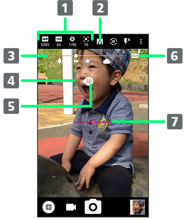 おすすめプラスでは手動で設定を変更して撮影ができます。