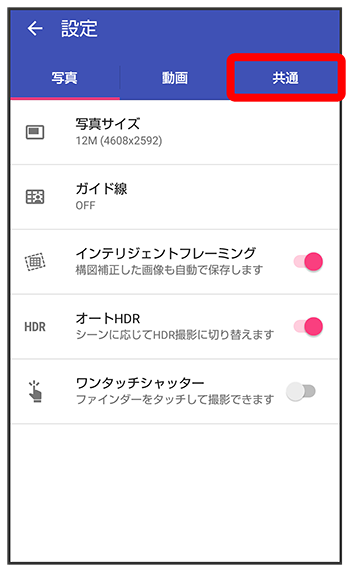 写真/動画撮影共通の設定をする