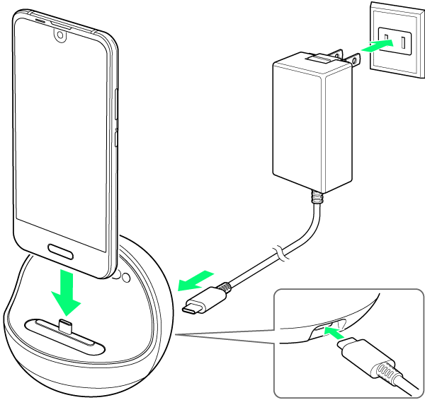 本機の電源を入れ、本機をロボクルで充電する