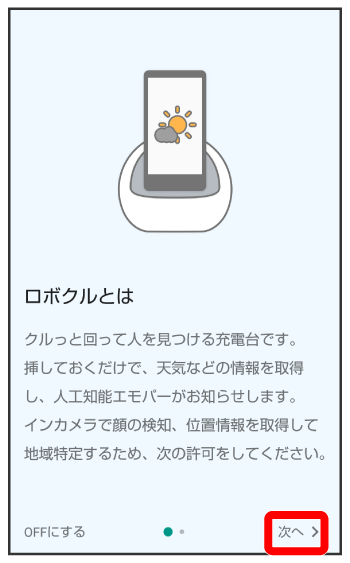 ロボクルについての画面が表示されます。
