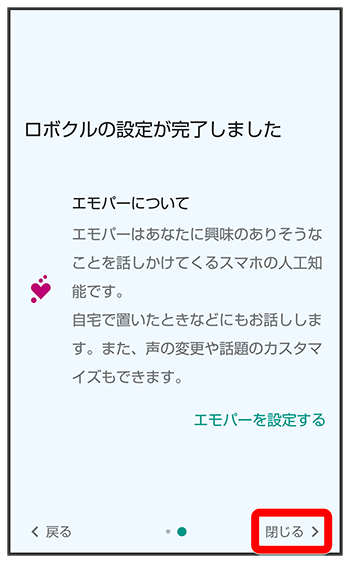 - エモパーの設定を行う場合は、をタップし、画面に従って操作してください。