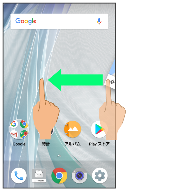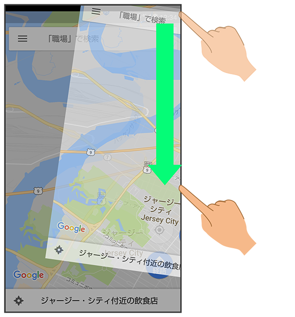 画面の右上(左上)の角に触れる画面の縁を下になぞる