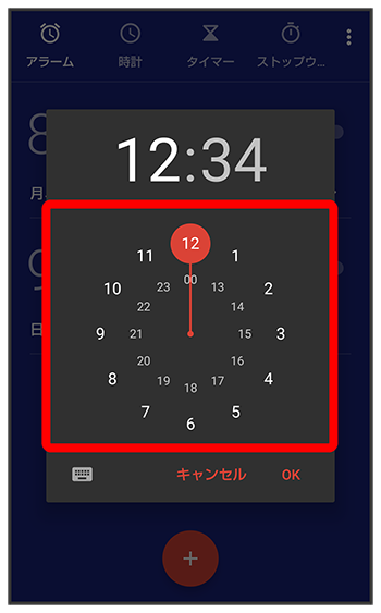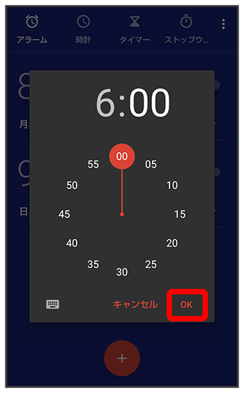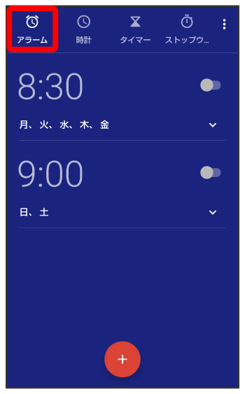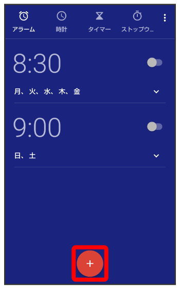 アラーム画面で- をタップすると、アラームを削除することができます。