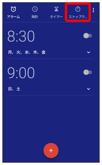 ストップウォッチ画面で- 夜間モードを解除するときは、画面をタップします。