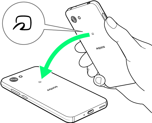 送信するデータ(電話帳/画像など)を表示させた状態で、本機の背面にNFC対応機器を重ねる