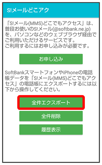 「S!メール(MMS)どこでもアクセス」へ電話帳をエクスポートする