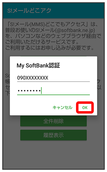 My SoftBankの電話番号とパスワードを入力
