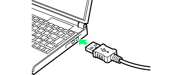 パソコンのUSB端子に、USB Type-CケーブルのUSBプラグを差し込む