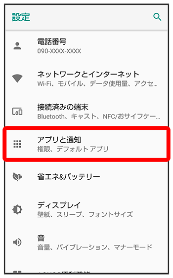 アプリと通知の設定
