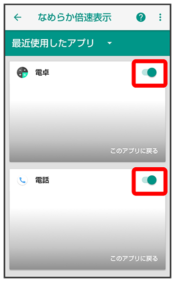 - /をタップすると、なめらか倍速表示画面に表示するアプリを変更できます。