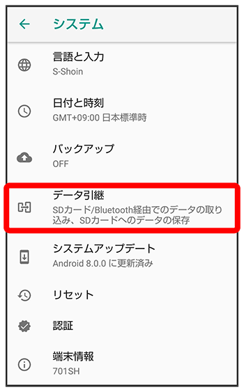 本機の電話帳、メール、スケジュール、ユーザー辞書/学習辞書、エモパーをSDカードに保存することができます。