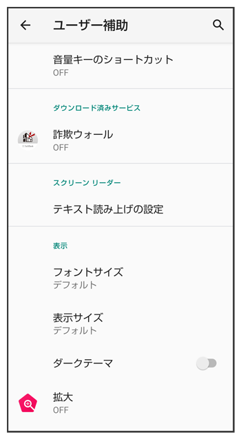 ユーザー補助の設定について