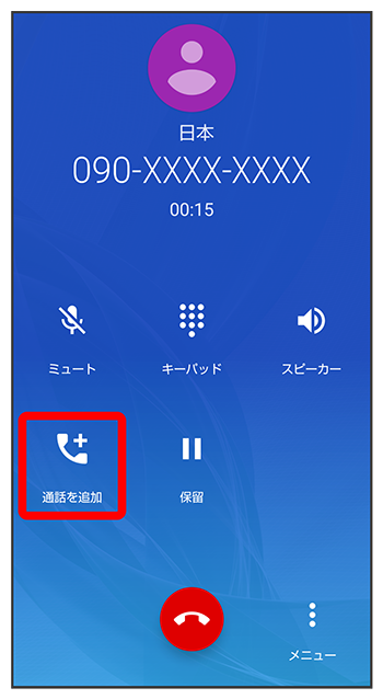 - 電話画面の上部を下にフリック通話を追加する連絡先をタップ通話を追加する電話番号をタップしても、通話を追加できます。