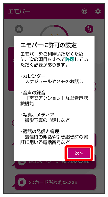 - 機能の利用を許可しなかった場合、アプリが正常に動作しないことがあります。