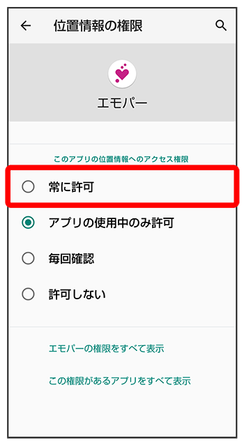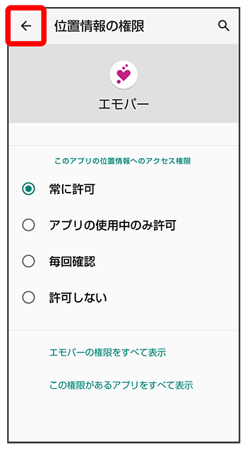 アプリが本機の位置情報やマイク、カメラなどを利用することを許可します。