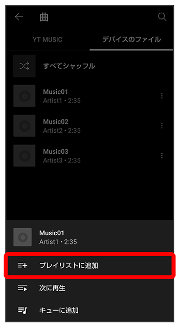 曲がプレイリストに追加されます。