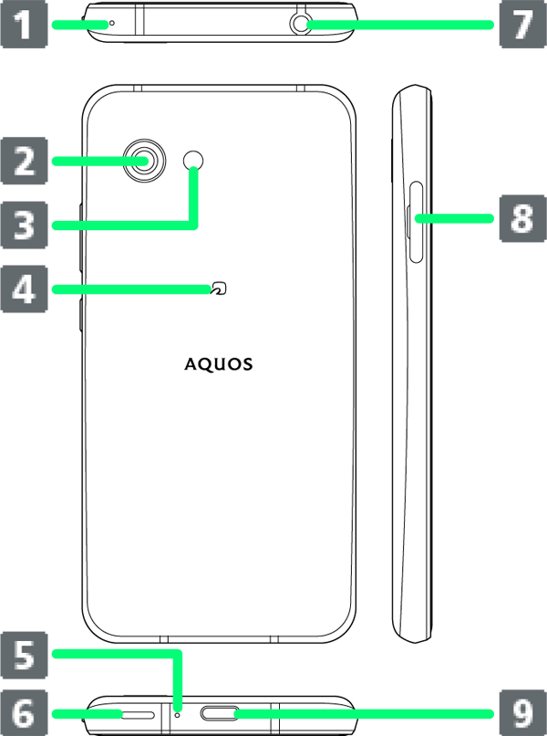 | 送話口/マイク | 自分の声を通話相手に伝えます。動画撮影時やエモパーにお話しする際はマイクとして利用します。 利用時は送話口/マイクをふさがないようご注意ください。 |
