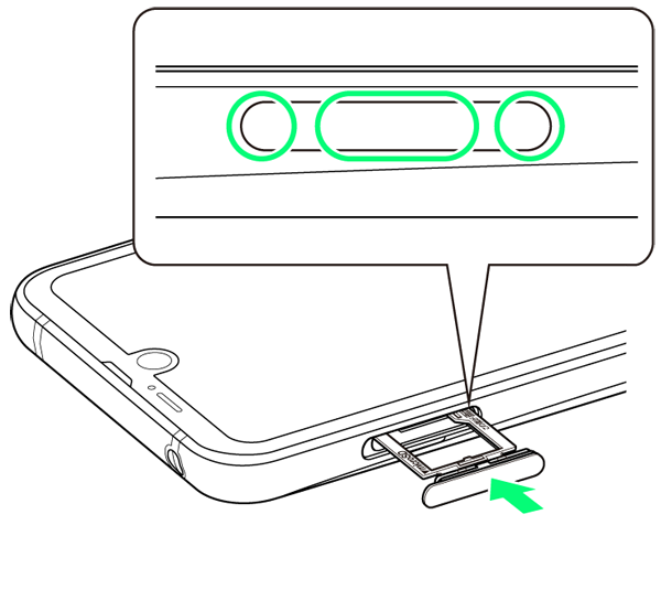 SIM/SDカード挿入口に、カードトレイを差し込む