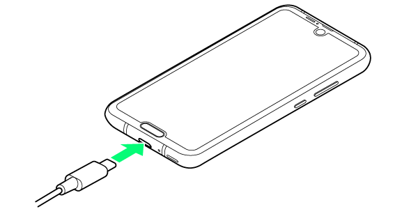 本機の外部接続端子に、ACアダプタのUSB Type-Cプラグを差し込む