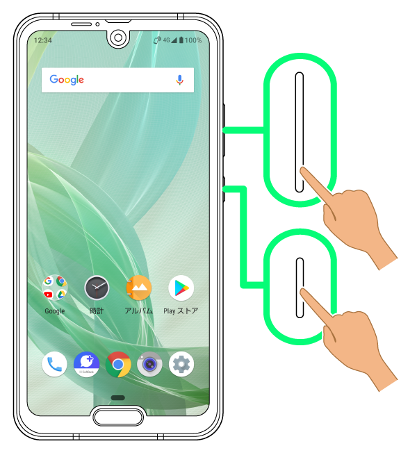 電源キーを長押しし、をタップしても、スクリーンショットを撮ることができます。