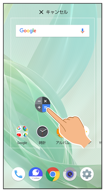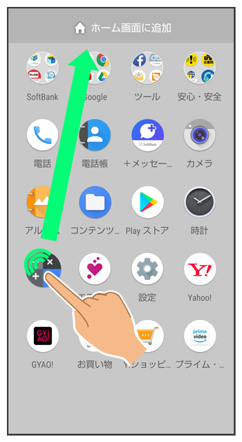 アプリ一覧画面でアプリをロングタッチし、「ホーム画面に追加」までドラッグ