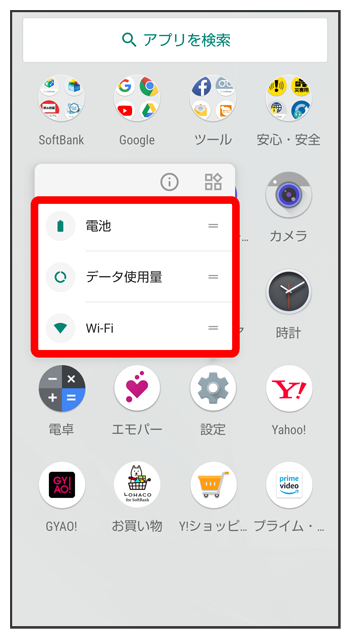 アプリをロングタッチすると、アプリにより機能へのショートカットが表示される場合があります。機能ショートカットをロングタッチし、ホーム画面の追加したい位置で指を離すと、機能へのショートカットとして追加することができます。