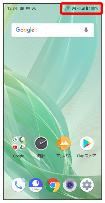 - 本機はFDD-LTE(SoftBank 4G LTE)およびAXGP(SoftBank 4G)に対応しており、どちらに接続していてもこのアイコンが表示されます。また、SoftBank 4Gに優先的に接続します。