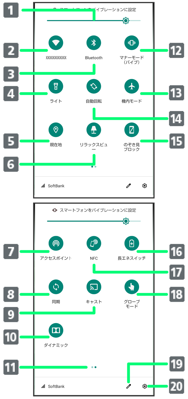 クイック設定パネルの見かた