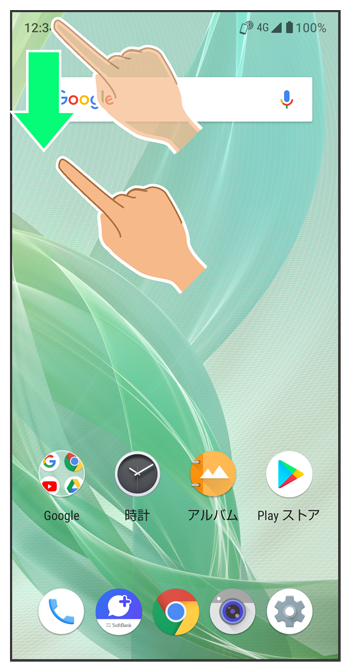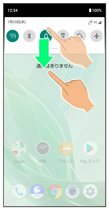 通知パネルを下にドラッグ