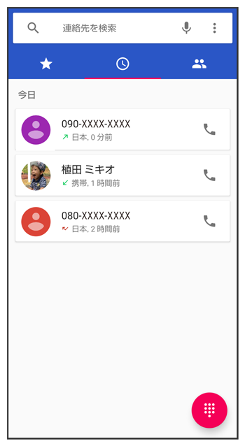 通話履歴一覧画面で確認する相手の名前/電話番号をタップ履歴詳細画面が表示されます。