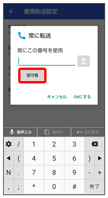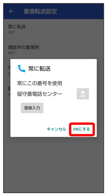 - をタップしたときは、常に着信を留守番電話センターに転送するかどうかを設定できます。